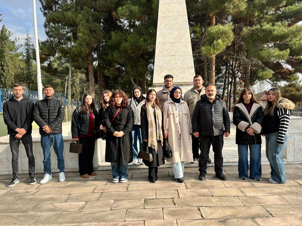 İletişim ve Tasarımı Bölümü öğrencileri, Dekan Yardımcısı Doç. Dr. Münir Şahin’in koordinatörlüğünde, Fakülte Sekreteri Ömer Galip ve Araştırma Görevlisi Dr. Vildan Keleşoğlu’nun da katılımlarıyla Erbaa Şehitliğini ziyaret etti. Milli ve manevi değerleri yaşatmak, tarih bilincini güçlendirmek amacıyla gerçekleştirilen ziyaret, duygu dolu anlara sahne oldu.