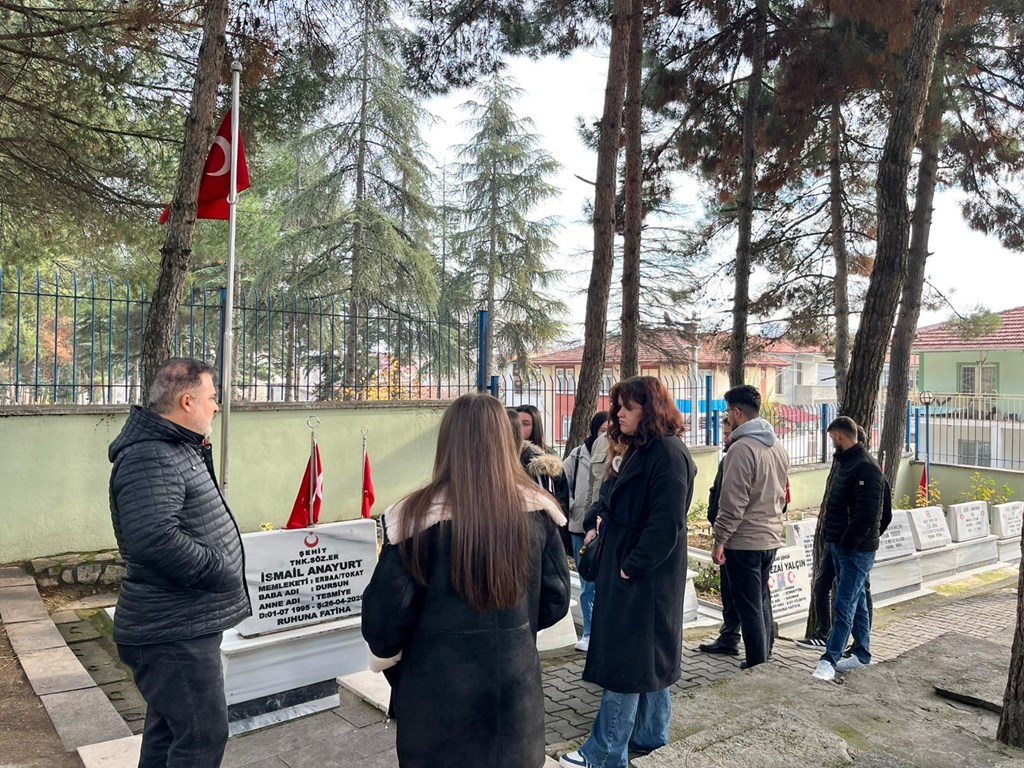 Program kapsamında öğrenciler ve akademik-idari personel tarafından Kur’an-ı Kerim okunarak dualar edildi. Şehit kabirlerine karanfiller bırakılırken, katılımcılar saygı ve minnet duygularını dile getirdi. Sessiz ve huzurlu bir atmosferde gerçekleşen ziyaret, öğrencilerin milli değerlere olan duyarlılıklarını pekiştirdi.