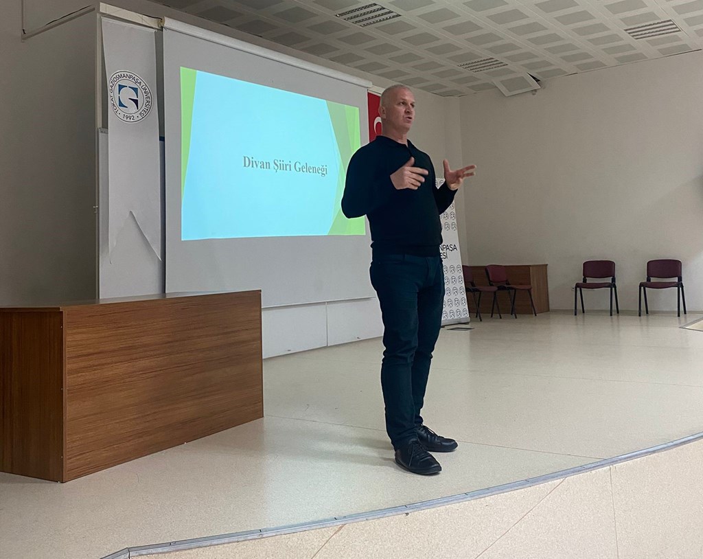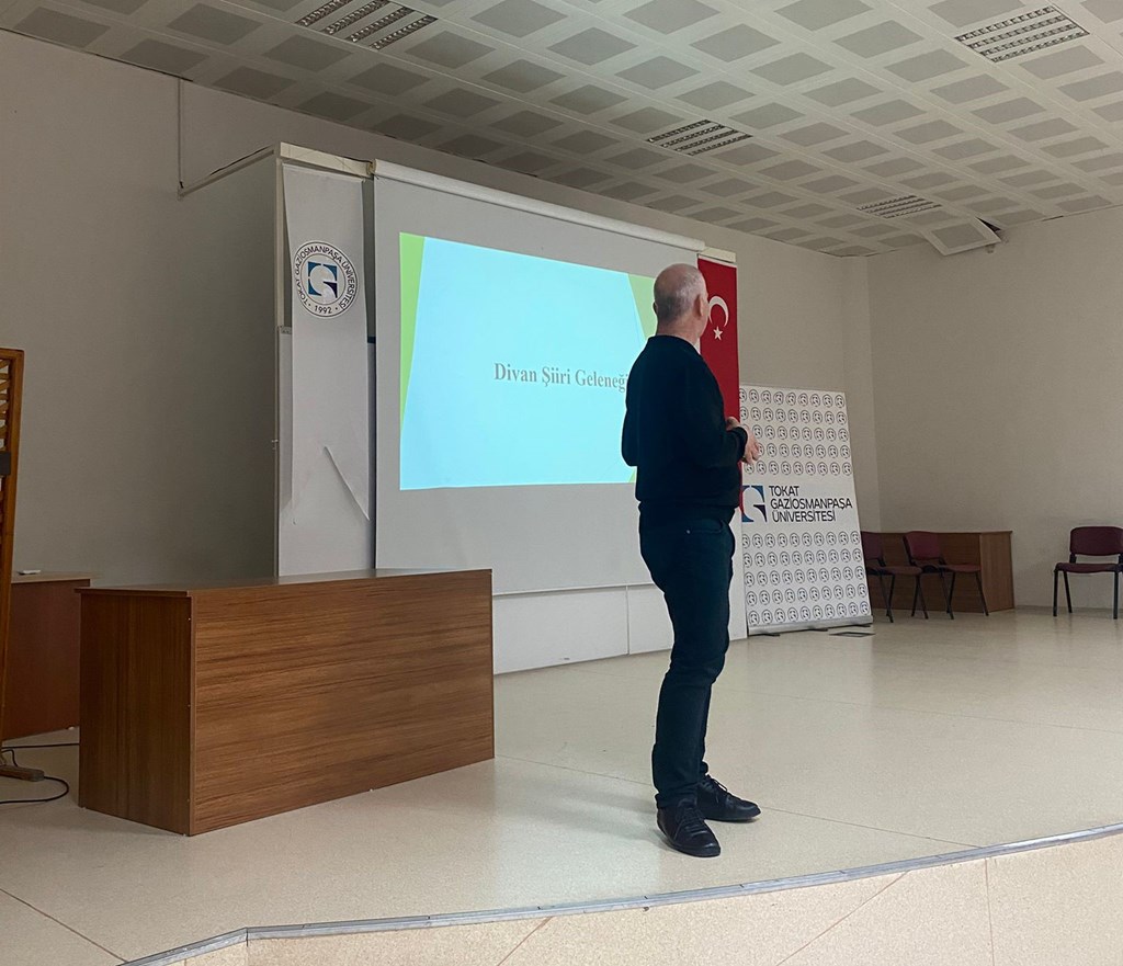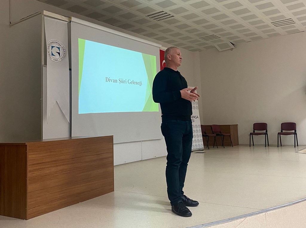Fakültemiz Türk Dili ve Edebiyatı bölümü öğretim üyelerinden Doç. Dr. Abdulhamit TOPRAK tarafından “Divan Şiiri Geleneği” adlı bir konferans gerçekleştirilmiştir. Konferansı gerçekleştiren hocamıza teşekkür ederiz.